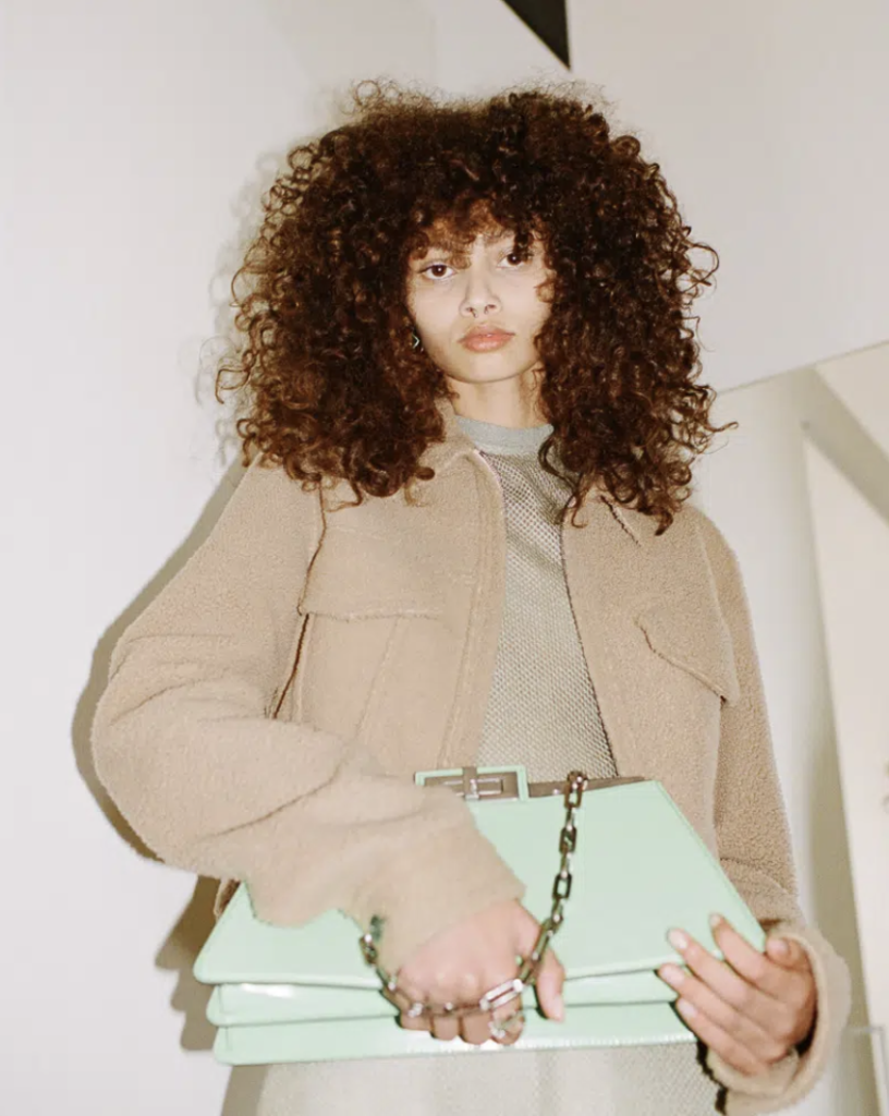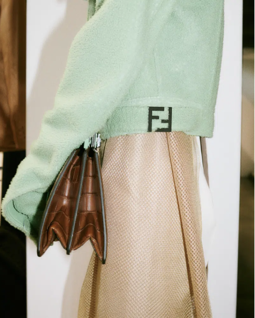 For Spring/Summer 2023, FENDI masterfully revitalizes one of its most cherished House classics. Unveiling the Glamorous Peekaboo Cut. The freshly-minted Peekaboo Cut fuses the signature form and composition of the Peekaboo ISeeU with a striking ’90s flair, a predominant motif throughout the entire new collection. Amplifying the FENDI Peekaboo’s most esteemed elements, the Peekaboo Cut is characterized by a sleek metal bar and a twist lock traversing its horizontal axis. The bag’s distinctive trapezoidal shape further accentuates its sharp contours.